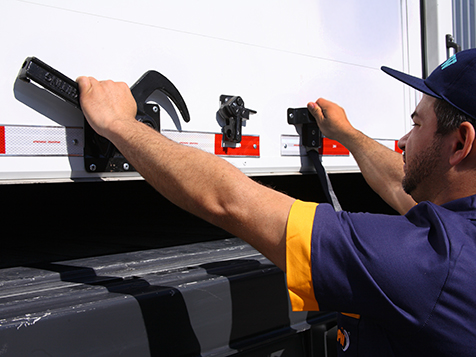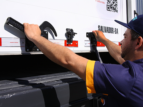 O conceito é simples, ao invés de abrir como toda porta convencional para os lados, a Porta Roll-Up abre para cima e entra dentro do baú, paralela ao teto.